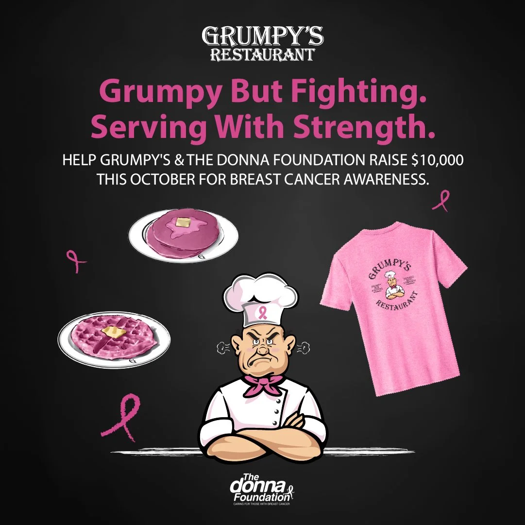 JACKSONVILLE, Fla. – Grumpy’s Restaurant, an award-winning full-service Americana diner serving breakfast, lunch, and brunch, is proud to announce the launch of its first-ever Breast Cancer Awareness Campaign, partnering with The DONNA Foundation as the exclusive charitable beneficiary.